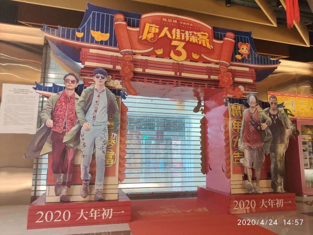 4月20日,朱谨言站在影院门口,望着那座《唐人街探案3》的巨幅展架发呆。
