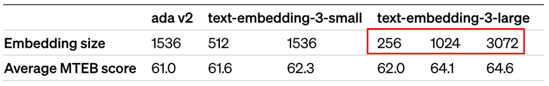 Embedding 模型的选择问题,Embedding 模型对于检索速度、质量都有比较大的影响,比如说 Embedding 的维度对索引的大小、检索的速度都有影响,比如 OpenAI 最新发布的 text-embedding-3-large 模型(New embedding models and API updates)包含 256,1024,3072 三个维度,其中 256 和 3072 维度 embedding 差距 12 倍,这也就意味着索引大小、检索计算量相差 12 倍左右。