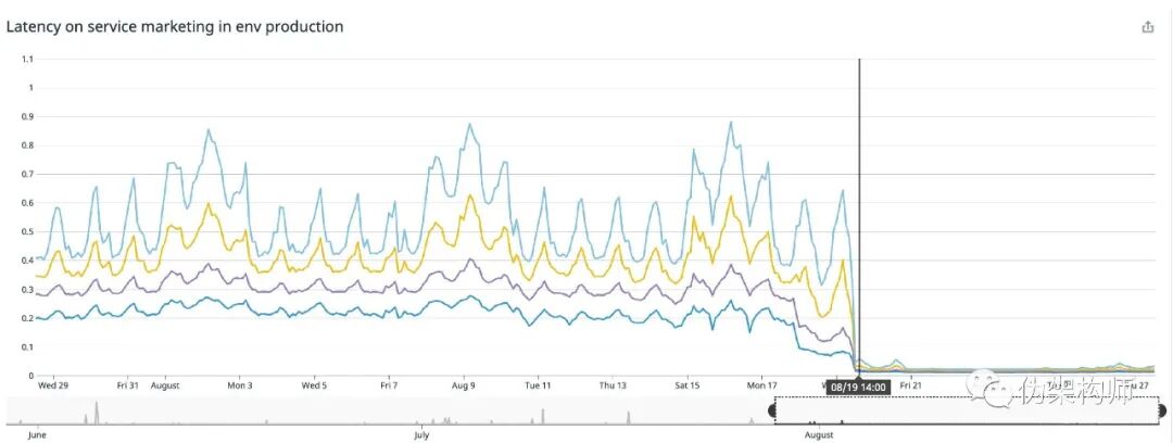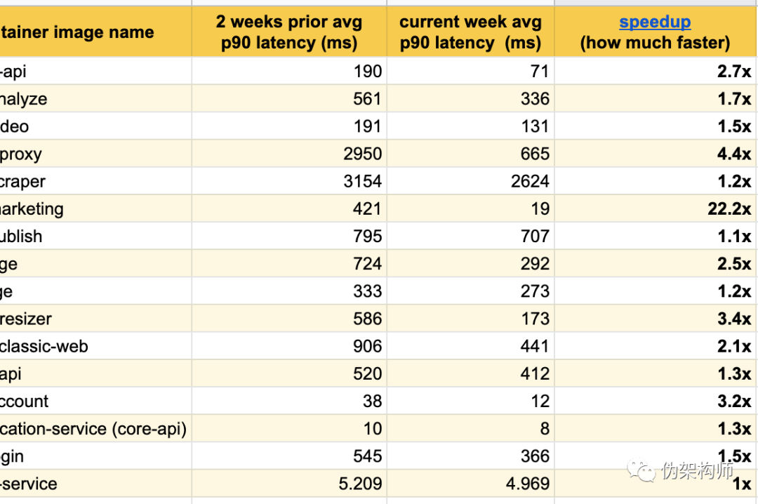 在几周的调整之后,我们得到了下表的结果,表格中可以看到,所有服务的延迟都大大降低了。