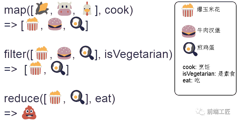 上面的例子先用 split 把字符串转换数组,然后再通过 map 把各元素的首字母转换成大写,最后通过 join 把数组转换成字符串。整个过程就是 join(map(split(str))),体现了函数式编程的核心思想:通过函数对数据进行转换。