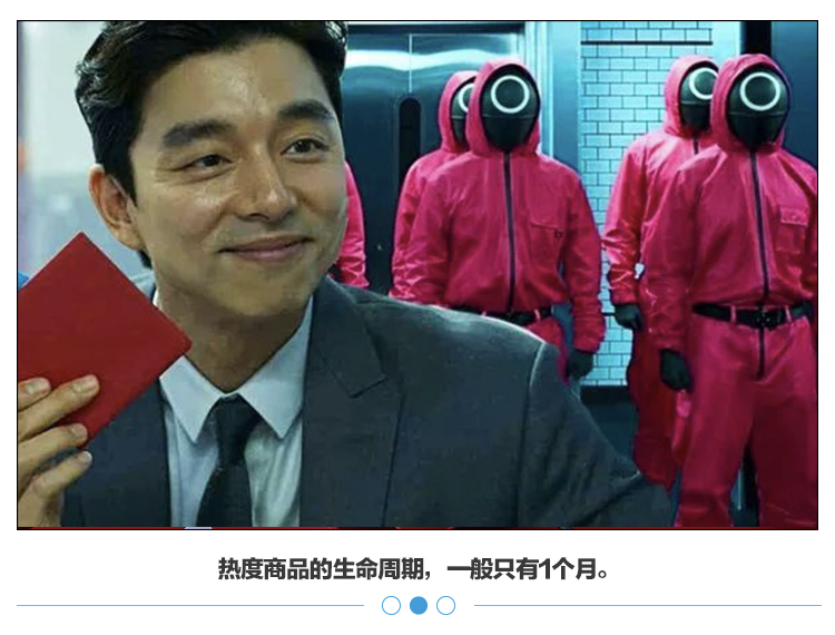 按照目前《鱿鱼游戏》的热度,未来官方出周边商品的可能性不小。但一个IP从诞生到爆发需要一个较长的培育期,能带火的商品也五花八门。热度商品之所以能多次成功,更值得被借鉴的还是它的经营逻辑,从消费趋势的捕捉、关键词数据的分析、快速响应的供应链、及时跟进的推广策略到对商品生命周期的理解,这同样也是传统电商产品,需要去不断改进和完善的方向。