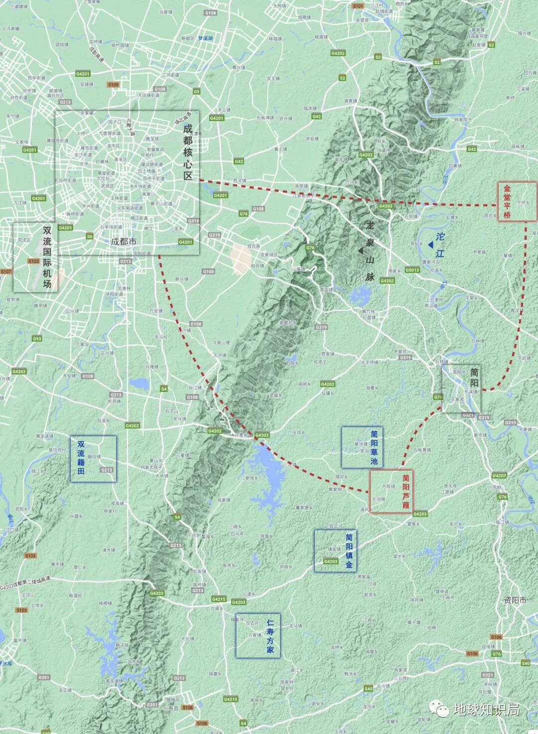 但令人意想不到的是,此次选址却在隔年被推翻,简阳成为了最后的赢家。成都的发展方向一下子从东北转向东南,也就是为了天府新区。