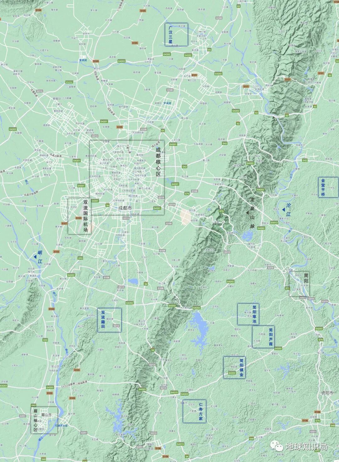 成都平原是个相对较小的范围,在龙泉山以西