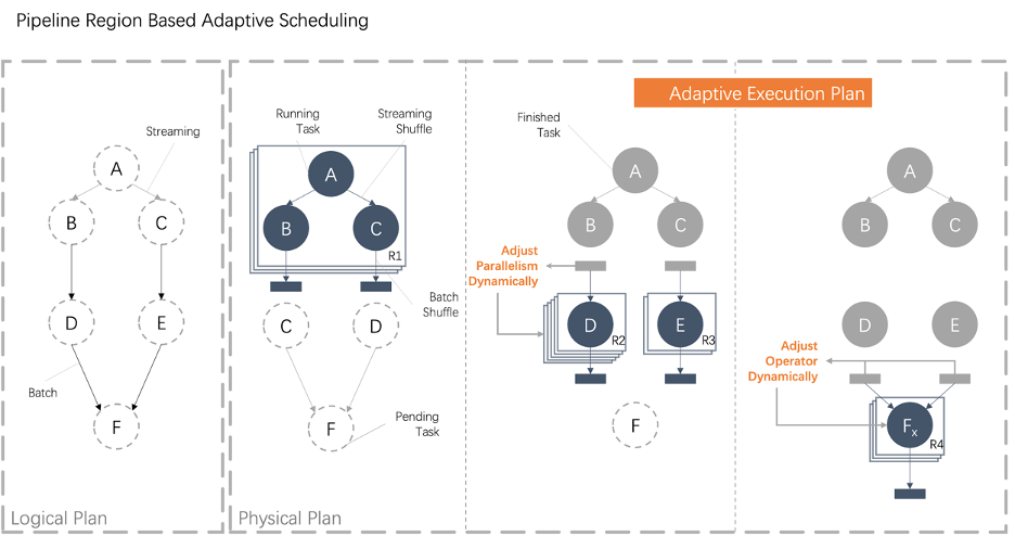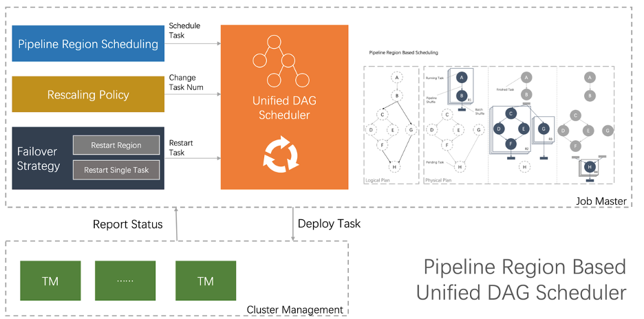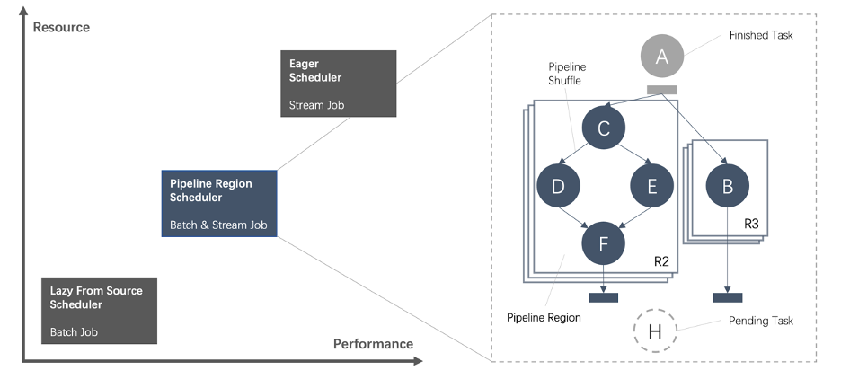 架构不一致、维护成本高。调度的本质就是进行资源的分配,换句话说就是要解决 When to deploy which tasks to where 的问题。原有两种调度模式,在资源分配的时机和粒度上都有一定的差异,最终导致了调度架构上无法完全统一,需要开发人员维护两套逻辑。例如,流的调度模式,资源分配的粒度是整个物理执行计划的全部 Task;批的调度模式,资源分配的粒度是单个任务,当 Scheduler 拿到一个资源的时候,就需要根据作业类型走两套不同的处理逻辑;
