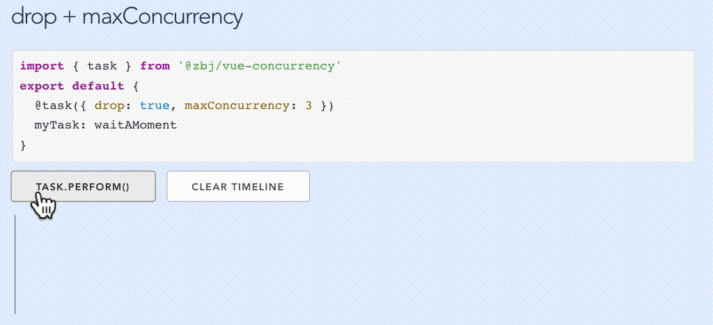 默认情况下,多次调用myTask.perform(),任务将并发运行。例如: