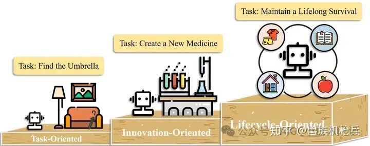 自主学习能力:即Agent在开放世界环境中自主生成目标并实现目标的能力,包括探索未知世界和在此过程中获取技能的能力。对这种能力的评估可包括为Agent提供一个模拟生存环境,并评估其掌握技能的程度和速度。