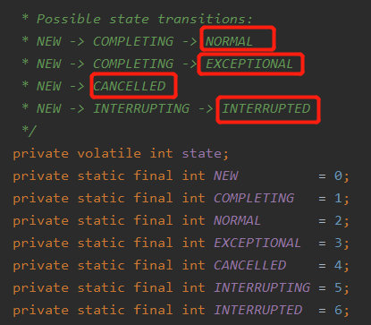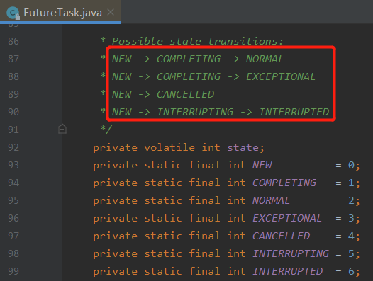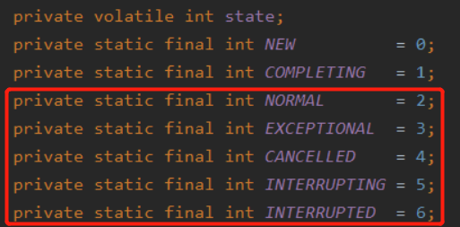 这样写的目的是除了判断了 NEW 状态之外,还判断了两个中间状态:COMPLETING 和 INTERRUPTING。
