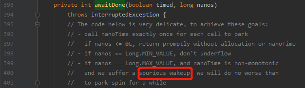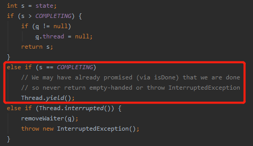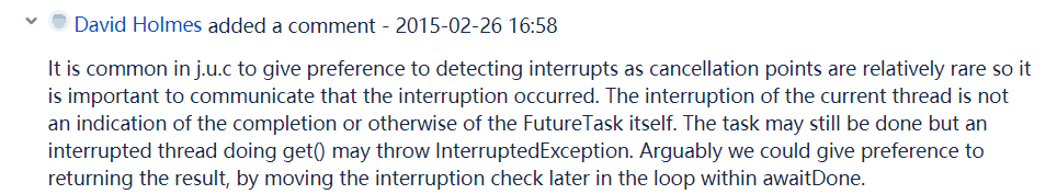 然后多说一句 JDK 9 现在的 FutureTask#awaitDone 里面有这样的一行注释: