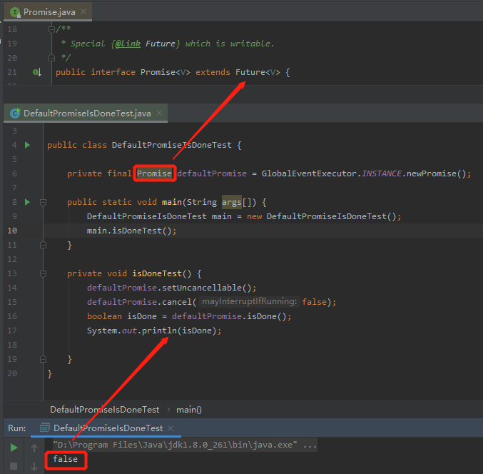 可以看到,在调用了 cancel 方法后,再次调用 isDone 方法,返回的却是 false。