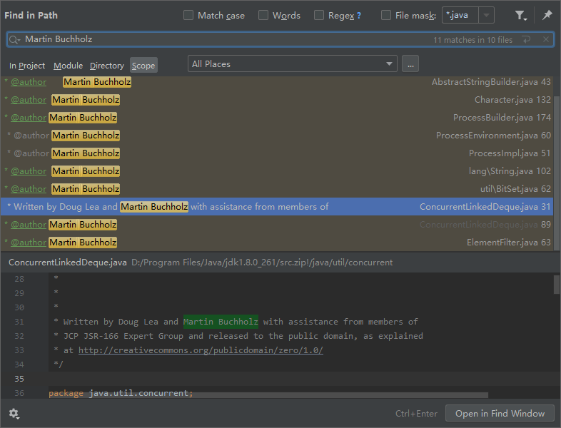 出于好奇,我在 JDK 的源码中搜索了一下 Martin 同学的名字,本以为是个青铜,没想到是个王者,失敬失敬: