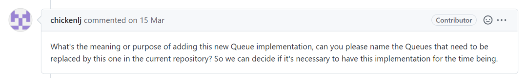 也就是说他只是提交了一个新的队列,但是并没有说到应用场景是什么,导致官方不知道该不该接受这个 pr。