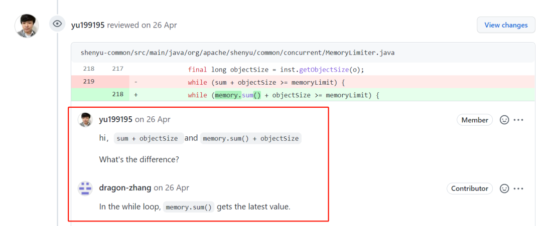 你要是还没反应过来,那我直接给你上个代码。后面有一次提交,是把 sum 修改为了 memory.sum() :