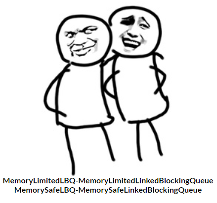 这两个类的名字太长了,所以先约定一下,在本文中,我用 MemoryLimitedLBQ 来代替 MemoryLimitedLinkedBlockingQueue。用 MemorySafeLBQ 来代替 MemorySafeLinkedBlockingQueue。