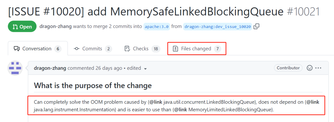 所以,当我看到 pr 上的 MemorySafeLinkedBlockingQueue 这个名字的时候,我就陷进去了。