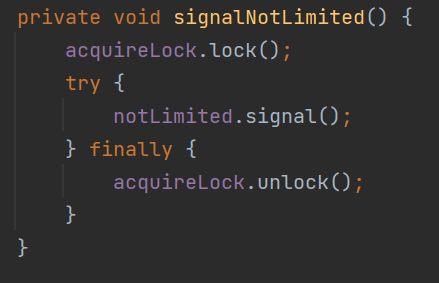 那么会调用 signalNotLimited 方法,唤醒这个被拦截的这个哥们: