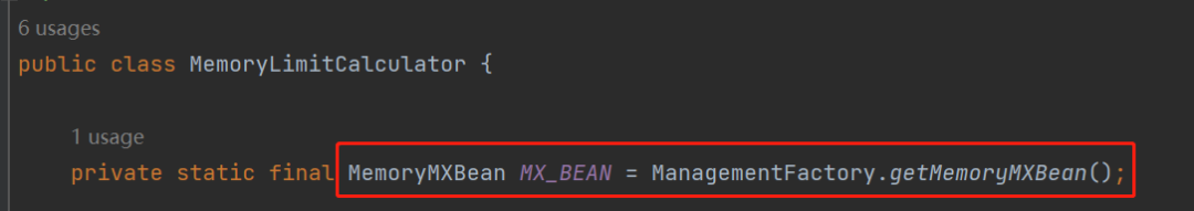 MemoryLimitedLBQ 的 hasRemainedMemory 方法里面也只有一行代码,其中 maxFreeMemory 是类初始化的时候就指定好了。那么关键的代码就是 MemoryLimitCalculator.maxAvailable()。