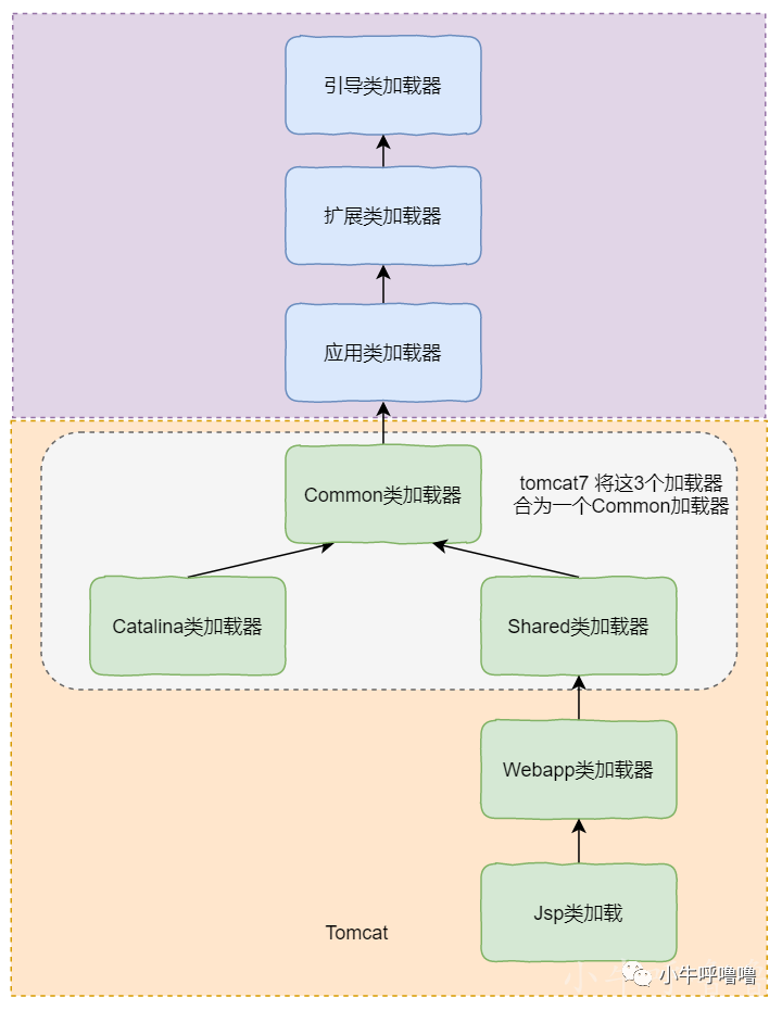 优先加载本身的目录下的class文件,加载不到时再交给CommonClassLoader以及上层的ClassLoader进行加载,这破坏了双亲委派机制。JasperLoader的加载范围仅仅是这个JSP文件所编译出来的那一个.Class文件,它出现的目的就是为了被丢弃:当Web容器检测到JSP文件被修改时,会替换掉目前的JasperLoader的实例,并通过再建立一个新的Jsp类加载器来实现JSP文件的HotSwap功能。我们来模拟一下tomcat 多个版本代码共存: