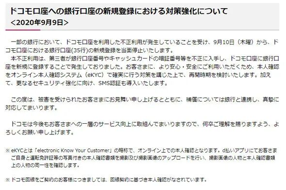 出现此次盗刷的一个原因是由于在注册的时候,在确认是否是持卡人本人这点上存在不足,在电子支付上对于安全性方面还需要提升。docomo表示将会在9月份导入「eKYC」系统,以确认在线办理的人为持卡人本人,之后会导入SNS认证。
