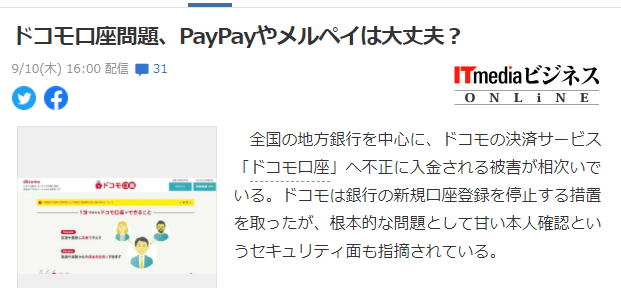 其实就在去年5月的时候,docomo电子支付衔接的りそな银行就已经发生过被盗刷的事件。