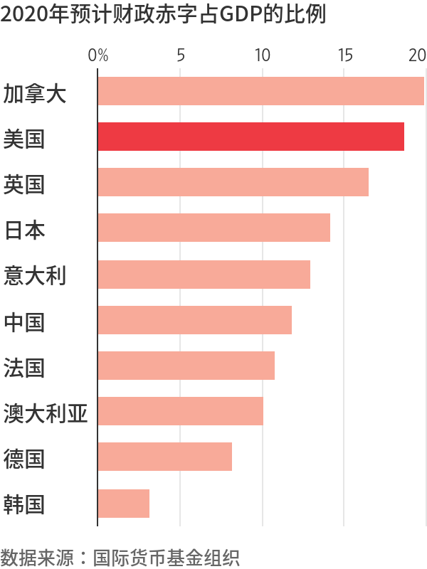 政府债务方面,IMF预计2020年美国的新增债务负担从规模上看将超过其他任何国家。