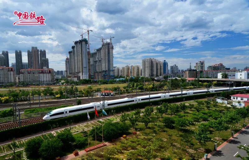 下图:2015年,和谐号行驶在京津城际铁路线上,这里正是当年的新官迅铁路道口。