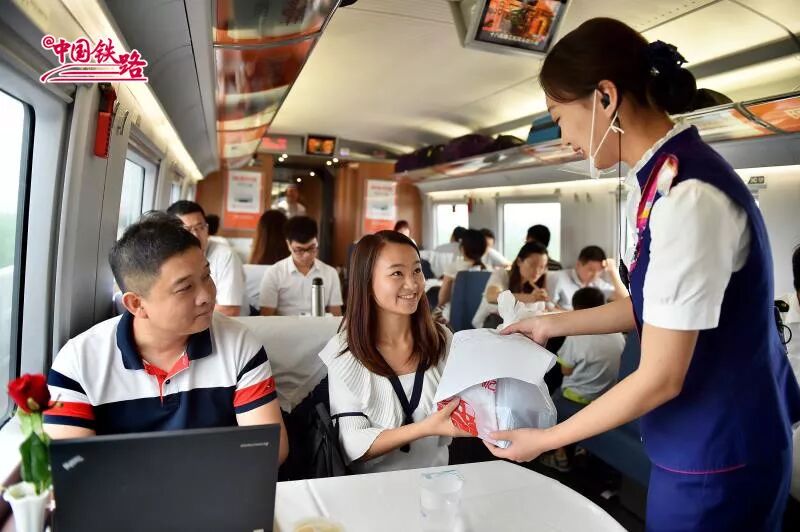 “香烟啤酒矿泉水,白酒饮料方便面,让让,腿收一下……”在许多人的记忆中,火车上售卖产品的小推车总是异常“神勇”,无论前方有多么艰难险阻,它总能过去。如今,复兴号列车上的小推车变成了电子超市,旅客只需在手机上登录12306餐饮界面,随时下单,网购小吃、零食等,几分钟内,动姐就会送到你的座位。