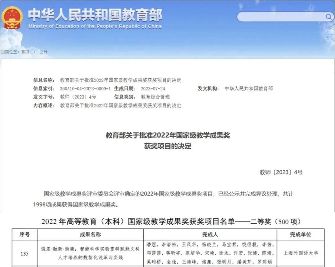 这一年,学校5项成果荣获2022年高等教育国家级教学成果奖。实现国家级一流专业本科教学院系全覆盖。17门课程入选2023年度上海高校市级重点课程立项名单。7个项目登榜首届上海市研究生教育改革项目立项。学校入选并深入建设国家教材建设重点研究基地。学校MBA项目荣登“中国最具影响力MBA排行榜”。国际工商管理学院通过AMBA和BGA五年最长期联合认证。6门课程入选2022年度上海高校一流本科课程;入选2022年度上海市教育评价改革优秀案例。