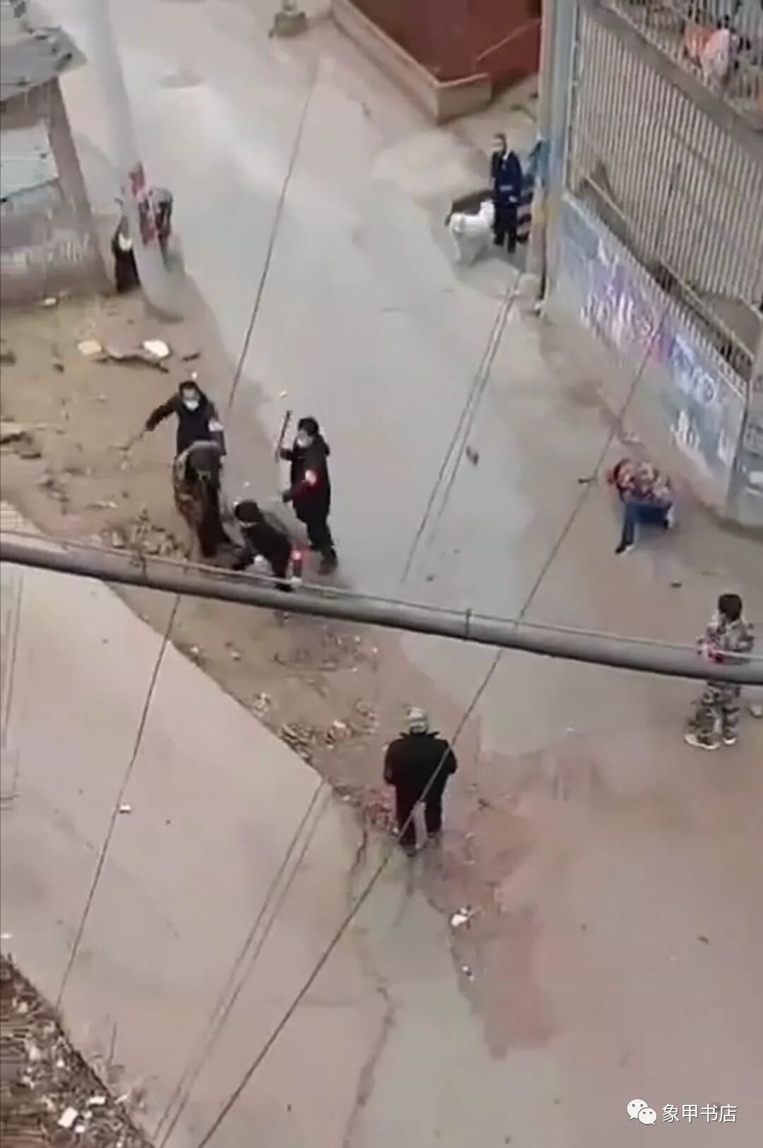 这段视频中,两位被殴打的村民戴着口罩,但是很有可能不是本村村民,因此遭受到了殴打和驱逐。