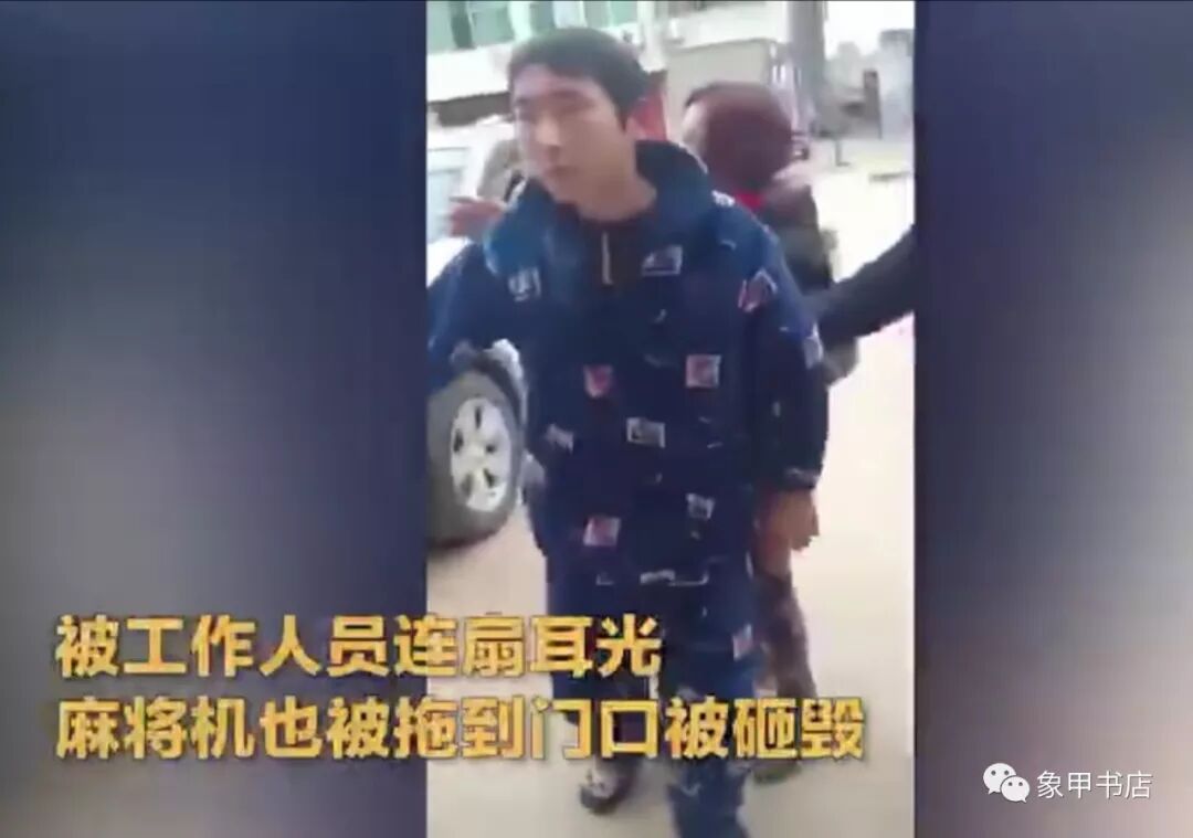 这段视频同样无法通过微信审核,但是时长达73秒的这段视频,完整了记录了这次冲突:一位穿迷彩服、挂着工作牌的疫情防控人员,一马当先冲入农户室内,抓起麻将桌上的麻将就砸。桌上穿着睡衣的一位年轻人稍作反抗,随后入户的三五个疫情防控人员就把这个小年轻架了出去,并对这个小年轻连续扇耳光,而且还把家中的麻将机拖出去砸毁。