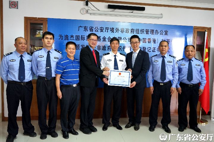 近日,广东省公安厅境外非政府组织管理办公室为逸杰国际慈善基金会有限公司(中国香港)封开代表处举行颁证仪式。肇庆市公安局、封开县公安局负责人,逸杰国际慈善基金会有限公司主席、副主席等出席本次颁证仪式。