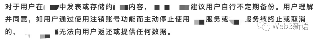 平台控制。从各平台协议看,用户账号归平台所有,用户只拥有账号的使用权,平台可以依照一些既定的制度规范停止账号服务或删除内容(大家熟知的封号、删帖),此外还对用户的创作设定了各种条条框框的限制(例如小说届被大家戏称的“脖子以下不能写”)。对于这些规则和限制,用户没有任何话语权。针对这点我们大可以理性讨论,毕竟企业需要严格遵守法律法规和监管规定,虽然确实有可能掺杂一些特定因素导致“误伤”。小新更关心的问题是,用户数据存在平台的服务器上,万一遭遇封号、删帖、注销、平台倒闭……用户会失去账户关联的所有数据,包括但不限于发布在平台的作品、粉丝、阅读量等等,多年经营尽付东流。