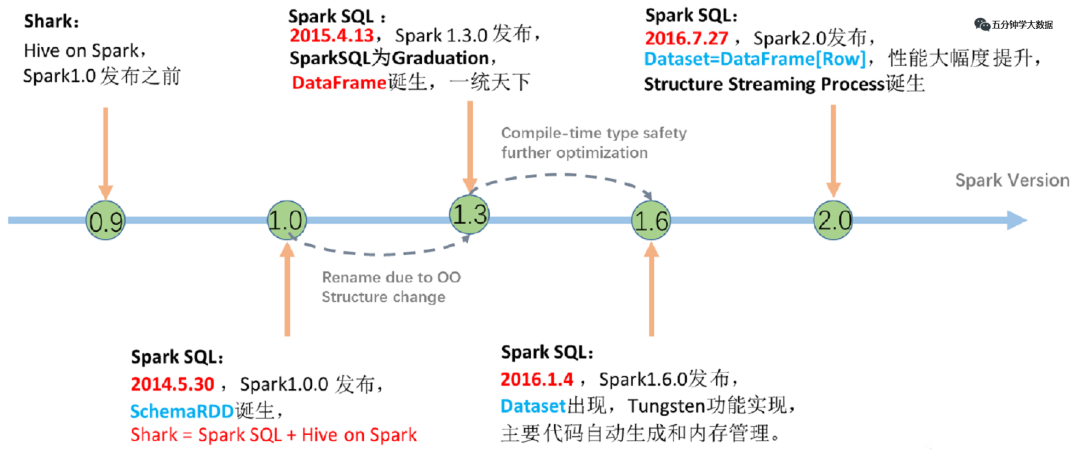 SparkSQL 在 1.6 时代,增加了一个新的 API,叫做 Dataset,Dataset 统一和结合了 SQL 的访问和命令式 API 的使用,这是一个划时代的进步。