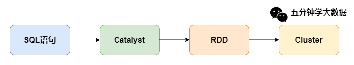 可以看到,我们写的SQL语句,经过一个优化器(Catalyst),转化为RDD,交给集群执行。