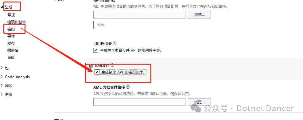 项目需要勾选输出api文档文件。这样就可以让所有实体类的summary信息被写入到输出目录下。如果有多个xml文件也没关系,下面的包已经实现自动解析多个xml文件功能,只选取匹配的那个。