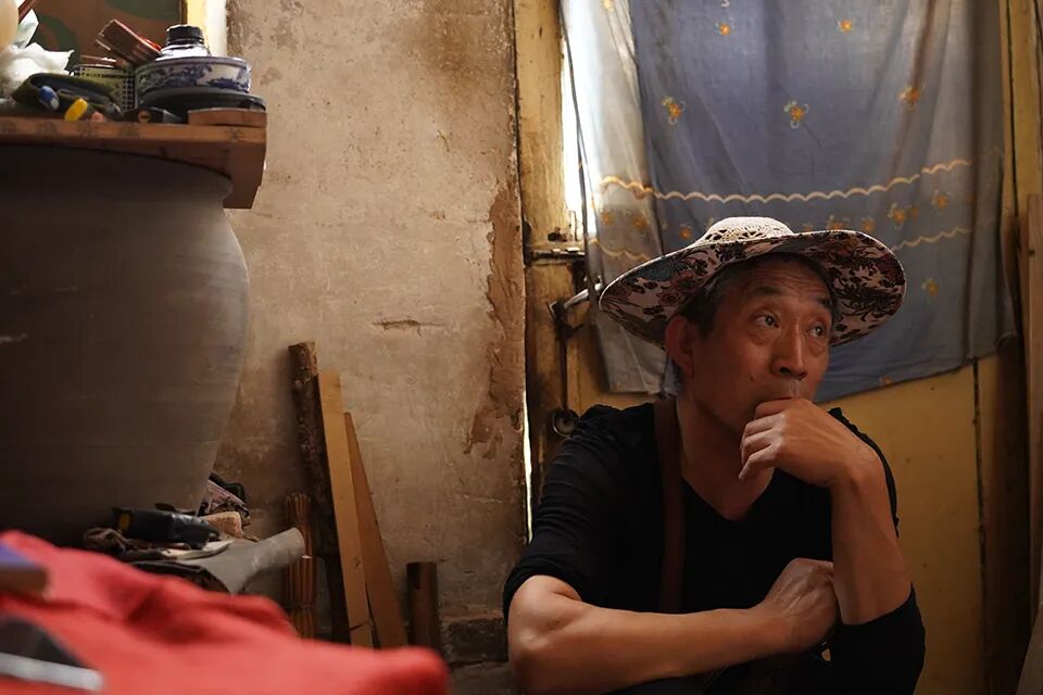 ▲ 57岁的何建华跳了四年芭蕾舞,遭受过诸多不理解,却在短视频平台获得关注和鼓励。为了保护脚尖,他跳舞时会把自带的两块红毯铺在脚下。 (南方周末记者 冯飞/图)