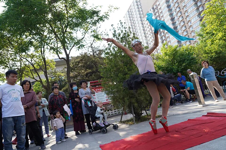 公园来了一位舞者。太阳帽底下是一张57岁的硬朗面孔,他1米72的个头,穿黑色连衣裙,袖口是蕾丝花边。为了跳舞时凸显身形,特地穿了胸垫。他推着自行车经过,到哪都是人群的焦点。尽管人们的目光难以称得上友好,但他已很满意,“这里的人挺好,不管他们愿意不愿意,都不赶我”。他一辈子生活在太原,对这儿的大多数人来说,男人跳芭蕾舞仍是离经叛道。他在广场、酒店和超市门口都被保安赶过,难听的话听了不少,礼貌点就说他影响了工作,请尽快离开。他不会争辩,不让跳,他就走,只是免不了有些伤心。很多时候,他只好在夜里或凌晨出来寻找地盘。大街上没人了,却留给他足够的自由。在府东公园,他只能算半个常客,大部分时候他不进到里面来,而是在外围的马路旁跳,地面是斜坡,音乐还混杂着不时呼啸而去的车声。南方周末记者来访的这个午后,阳光正好,他在公园里找到一处树荫,铺上了红地毯,旁若无人地换装。他从自行车后座上卸下小音箱,还有那些道具。芭蕾舞裙要上千元,他买不起,捡来一些纱布,用钢丝撑起,缝缝补补,再缠上两根松紧带,就能把这件黑纱裙吊在身上。舞鞋倒是不贵,但没有那么大的码数,他自己加长了后跟,再套上脚趾套,确保立脚尖时有了缓冲。还有一些东西在正规芭蕾里没有,是他自己琢磨出来的——手上舞弄的蓝色纱巾,啤酒罐剪开做成的头饰,耳边垂挂着大大的易拉罐底座,有点新疆舞的风味。这天的表演曲目是《离不开你》,歌里唱道——“我俩,太不公平,爱和恨全由你操纵;可今天我已离不开你,不管你爱不爱我。”这支舞何建华跳过上百次,很难从他肃穆的表情里得知,他是被谁抛弃、又离不开什么。每一个舞姿都发自对音乐的感受:唱到“敞开怀抱”,要温柔地张开双臂;唱到“抛弃”,就把纱巾高高抛起;高潮处,一定要立起脚尖,双腿有些颤巍巍,但也尽力地旋转了一圈。何建华相信,只要用肢体表达心里的想法——“这就是舞蹈”。没有人慷慨地献出掌声使场面不那么尴尬。何建华看过芭蕾舞剧《天鹅湖》以后,就认定大多数人无法欣赏芭蕾,“他们只看外在,跳什么形状、穿什么衣服”。就像黑天鹅顶替了白天鹅,“真正美的东西可能不被人们发现,人们反而欣赏冒牌货”。他把自己跳芭蕾舞的视频一条条上传到快手上,账号叫“芭蕾舞男”。他随身携带一支长长的木棍,把它靠在树或墙上,再用绳子绑住手机,吊在木棍上,用这繁复但廉价的方式替代了拍摄支架。尽管现实世界对他冷嘲热讽,但在网络世界里,他已有众多粉丝,最好的作品有超过15万次播放和四千多点赞,收到的大多是“加油爷爷”“注意保暖”这样的鼓励和关心。有人留言要给他寄裙子,他担心邮寄不便,回绝了。有个网友说,自己在山上种地,信号不好,听说他发了新视频,专门翻了几座山到镇上的奶茶店去看。何建华很感动,对他来说,更重要的是音乐响起后的那几分钟,他进入了脑海中的世界——在那里,他忘记了自己,以及不尽如意的生活。“通过跳舞,发现都不重要了。”府东公园的春日特别专场结束,何建华收拾妥当,扶起自行车准备离开,忽然转过头,向面无表情的观众们挥了挥手,像是谢幕。离退休还有几年,何建华丢了保洁员的工作。早上七点半上班,他四点多就起来,早早到工作的地方练舞。领导说,他影响了整个团队的形象。有一次,何建华的姐姐何月平接到通知,让她到弟弟的单位去一趟。物业主管问她,何建华老在楼道里跳舞,“他会不会跳楼啊?”何月平解释,弟弟只是跳舞,不会出格。对方不放心,要求她写下保证书,保证何建华不会跳楼。这件事何月平没对弟弟说。那天何建华去单位,发现很多人望着他指指点点,再三问姐姐才知道发生了什么。“人家一说你就给写了,其实是不对的,那就是妥协。”何建华不愿意妥协,他希望可以向对方解释清楚,“有可能他就同意你跳舞了,有很多人还是喜欢看跳舞的。”何建华独自生活多年,只有大他五岁的姐姐稍微帮衬着。自从他跳舞之后,总有人问何月平,你弟是不是不正常了?“我们觉得他这不叫跳舞,人家在舞台上换衣服跳,你是满大街跳。”何月平对南方周末记者说,“你是一个普通人。”因为看了迈克尔·杰克逊的音乐录像带,何建华迷上了跳舞,本来想学那个,但节奏太快,很考验关节。他试过广场舞,那么多人一起互动,聊不到一起去,他不喜欢。后来他从碟片上看见了芭蕾舞,男演员蹦跳范围大,女演员的动作幅度小,他肢体柔软,更好实现。何建华享受男扮女装,芭蕾舞兼具柔美和力量,能让他练出一双比女性还美的腿。他认真对南方周末记者解释,“最早的芭蕾舞是男人来跳的,有文字记载。”芭蕾舞起源于意大利,兴盛于法国,最早的演员均为男性,法国国王路易十四亲自表演,直到诞生一个世纪后才有女演员加入。女住客和同事不要的衣服,何建华看着漂亮,就带回家。一开始需要冒点勇气,后来索性大胆承认,他就是偏爱女装的布料和款式,舒适又保暖,“法律上也没有规定(不能穿)”。快手上有网友留言“大叔有一颗少女心”,他看了很高兴。和他共事过的苏梅芳对南方周末记者回忆,何建华喜欢化妆、穿高跟鞋,但苏梅芳跟他聊天,又觉得他说话挺有文化的,只是“做的事情让人理解不了”。何建华相信,如果自己跳到一定水准,就不会有那么多人取笑他。他决定突破立脚尖的动作。这个动作有危险