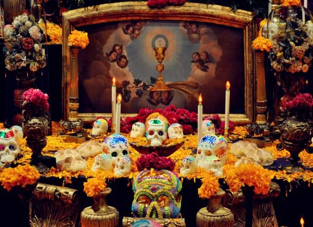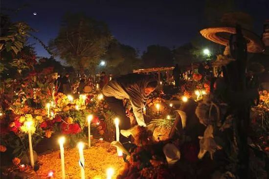 这是墨西哥的一个传统节日,每年的11月1日、2日墨西哥人会在祭坛上摆上逝者爱吃的食物,纪念逝去的亲人。