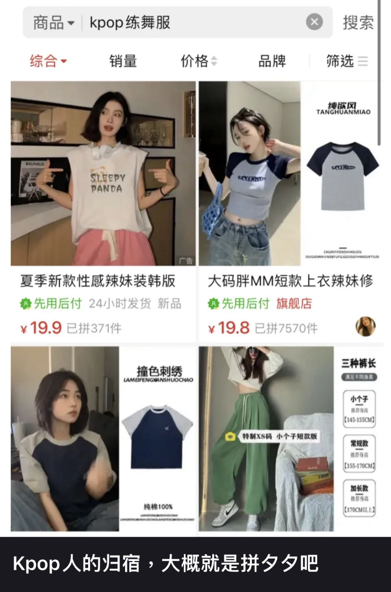 一些朋友为了缓解K-POP带来的消费焦虑,人生第一次解锁了去拼夕夕买衣服的体验: