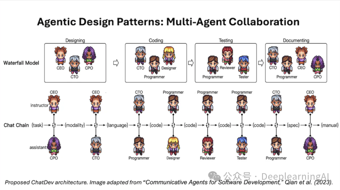 多智能体协作是我在最近的来信中描述的四个关键AI智能体设计模式中的最后一个。对于编写软件这样的复杂任务,多智能体方法会将任务分解为子任务,由不同的角色——如软件工程师、产品经理、设计师、QA(质量保证)工程师等来执行,并让不同的智能体完成不同的子任务。