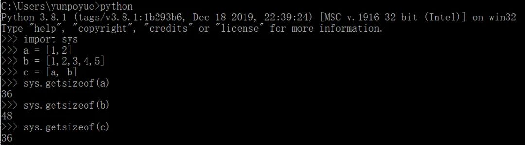 例如列表 [1,2],getsizeof() 不会把列表内两个元素的实际大小算上,而只是计算了对它们的引用。举一个形象的例子,我们把列表想象成一个箱子,把它存储的对象想象成一个个球,现在箱子里有两张纸条,写上了球 1 和球 2 的地址(球不在箱子里),getsizeof() 只是把整个箱子称重(含纸条),而没有根据纸条上地址,找到两个球一起称重。