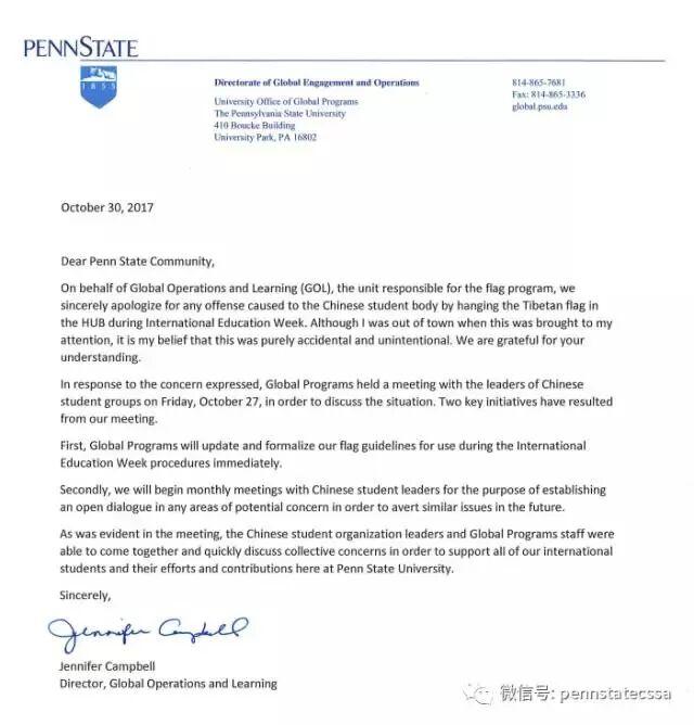 不要忘记了自己身体里留着的炎黄血液,we are penn stater,但我们也是中国人!”