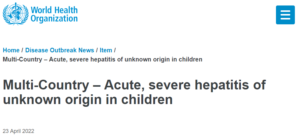 世卫组织在4月23日发布了题为《多国儿童中来源不明的急性严重肝炎》的报告。