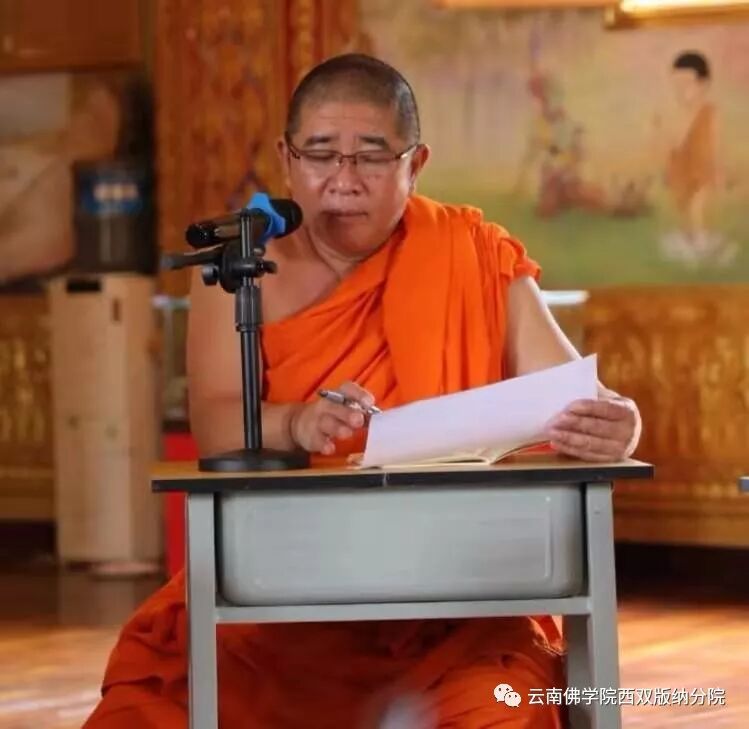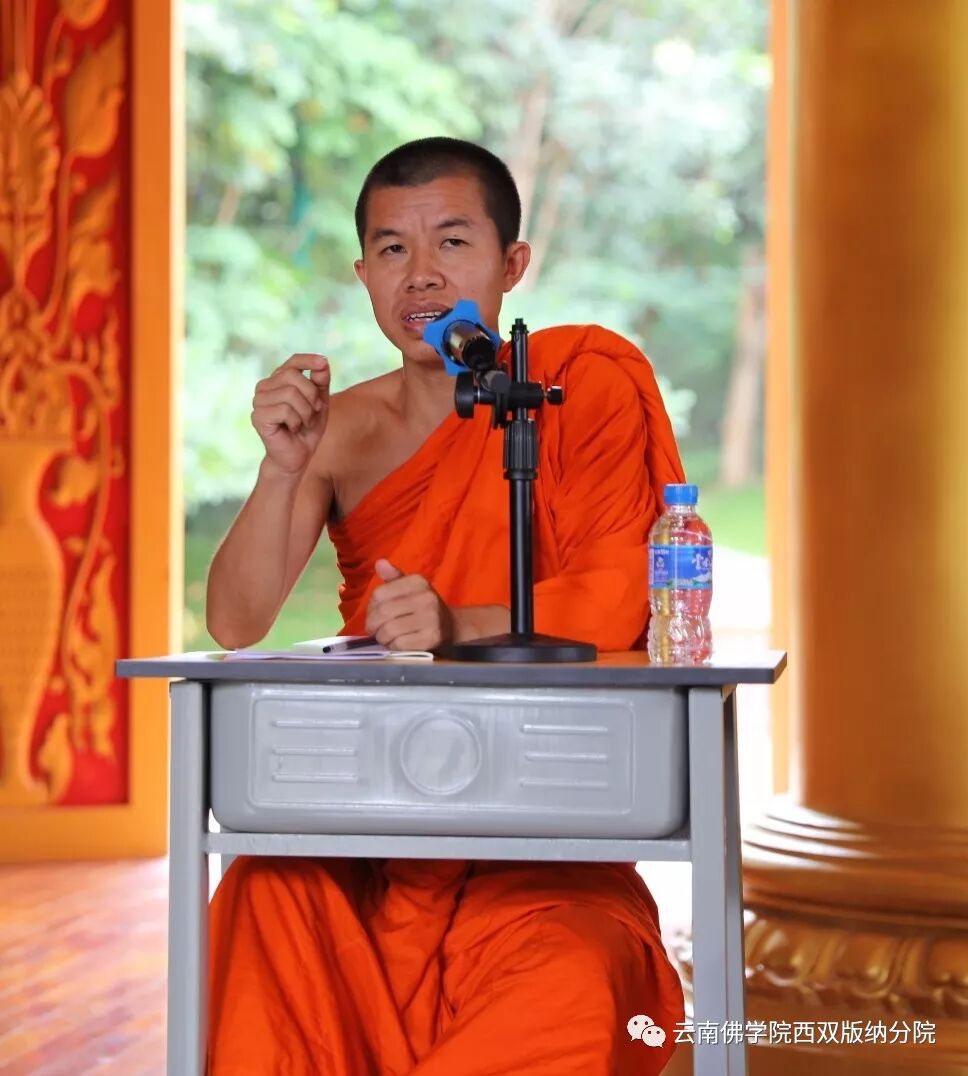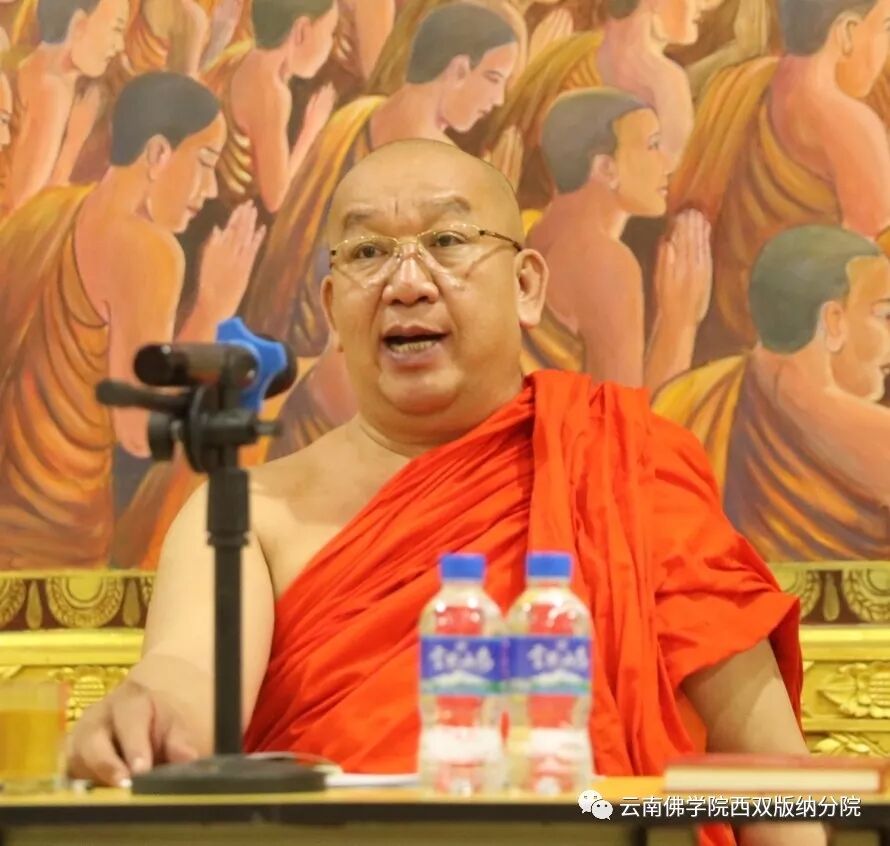 他在致辞中说到:为了在全国佛教界提倡研习经典、讲经说法、弘扬佛法的优良传统,发现和培养青年弘法僧才,进一步加强佛教自身建设,解决当前南传佛教僧才短板现象,刻不容缓。自2008年开始,中国佛教协会连续每年举办中国佛教讲经交流会,于2011年,组织历届中国佛教讲经交流会获奖法师代表赴全国各地巡讲,法旅遍及各省市区县,受到了各地佛教信众的普遍欢迎和一致好评,取得了良好的社会反响,讲经交流会十余年以来,三大语系佛教以各种契机交流互鉴,无论汉传佛教界、藏传佛教界、还是南传佛教界都积极组织开展举办此活动,大长老简要概述了西双版纳佛教百废待兴中自80年代兴建佛寺,90年代重整教风,筹办佛学院培育僧才等三十多年的弘法利生历程,有的僧才现今仍然坚持致力于佛教的延续而不懈努力;有的虽然步入社会,但他们是佛教住立不可或缺的助缘和护持者;僧众住持佛教,俗家信众护持佛教,相得益彰;他勉励诸位法师和教职人员,要树立弘法利生的服务精神,要明确出家者在佛教中所承载的使命和责任感,要清晰和升华出家意向,为了传统出家、为了求知出家、为了解脱轮回出家、为了佛教延续出家,升华出家意向就得不断提升自身学修能力和水平,讲经交流就是将“闻、思、修”用大众化的认知表达并分享出来,使听闻之众互鉴互学,这一切离不开日常的学习积累,一定要重视积累,深入研习巴利三藏,以及相关的佛教常识,比如:《佛陀传记》、《随佛弟子本行记》、《戒律学》、《佛法格言写作》等。在讲经弘法时,要了解听众对佛法的认知层次,应机施教,契理契机,灵活风趣;在解疑答惑中,要通俗易懂,言简意赅,解决信众当下的困惑,正信正行引导信众,增强服务大众意识,回馈社会意识。在适当时机组织到各地巡讲,加深信众对佛教的多作用认知。