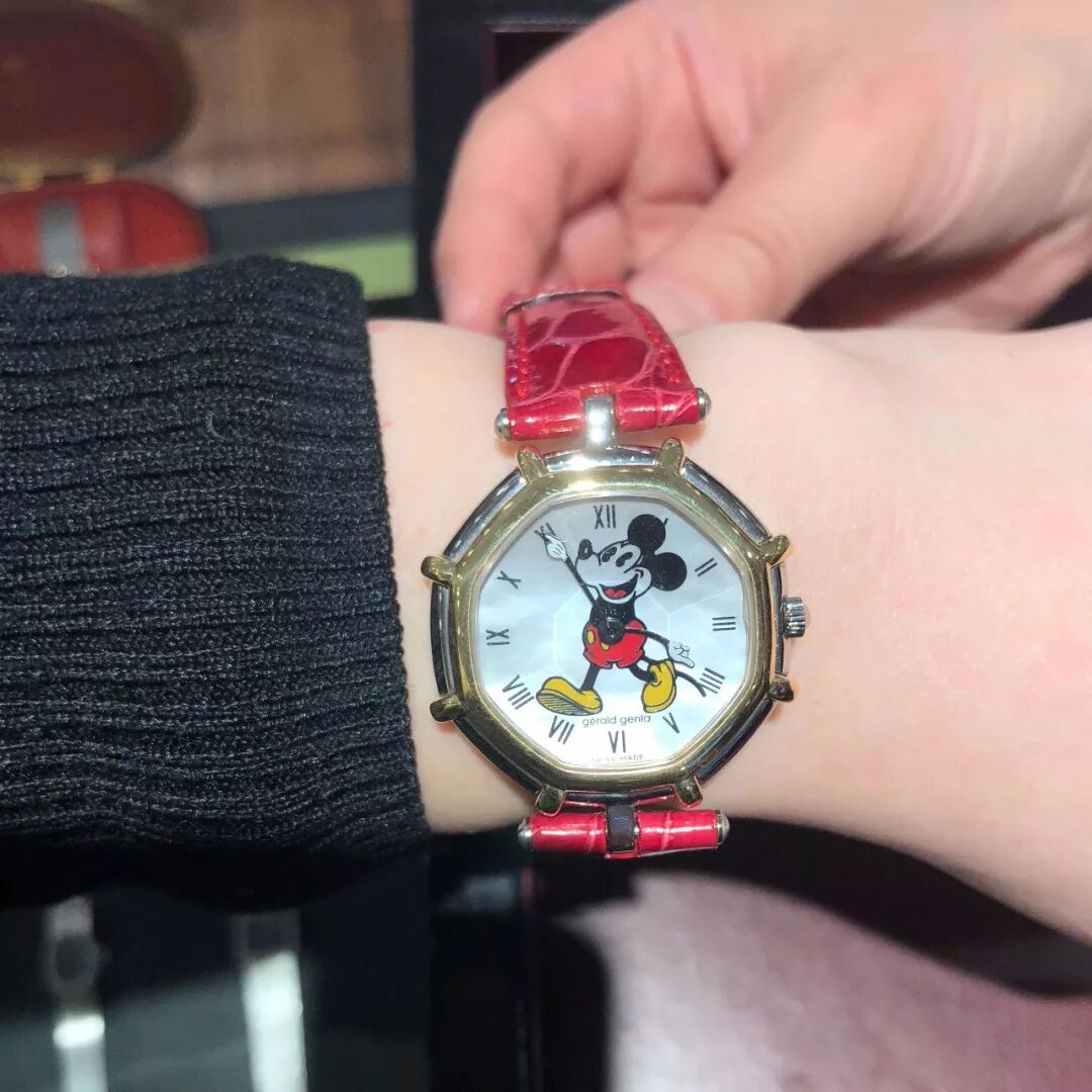 整家店给我印象最深也是唯一一块拿出来试戴的是尊达的米老鼠腕表(尊达大师也是鹦鹉螺、皇家橡树和星座等当红款的设计师)。