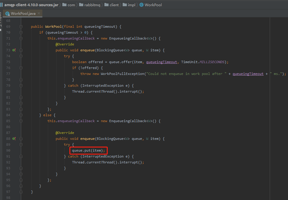 我不仅搞了一个自定义队列,还把线程池的源码粘出来了一份,这样就可以加日志了: