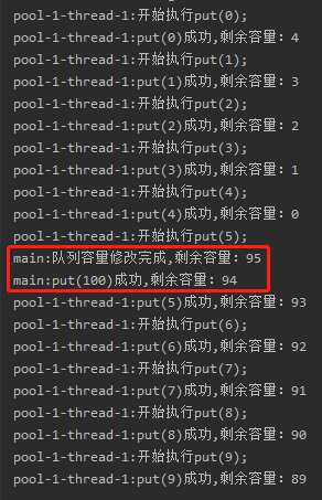 " 队列剩余大小:" + queue.remainingCapacity() +