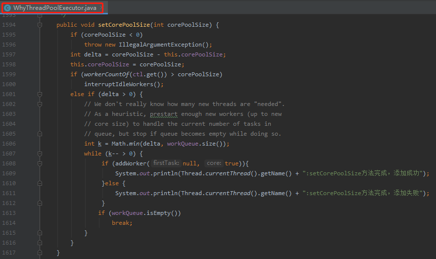 接着我们看看 setCorePoolSize 方法干了啥事: