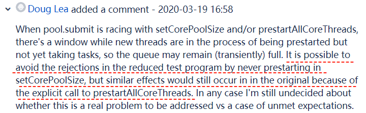 there's a window while new threads are in the process of being prestarted but not yet taking tasks。