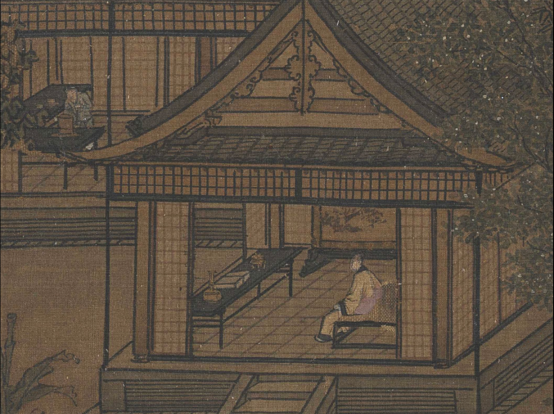 宋人吴自牧在《梦粱录》中记,“烧香点茶,挂画插花,四般闲事”。《四景山水图》中,屋内陈设有茶炉、山水画屏风、香炉、花瓶等,处处可见“四般闲事”。