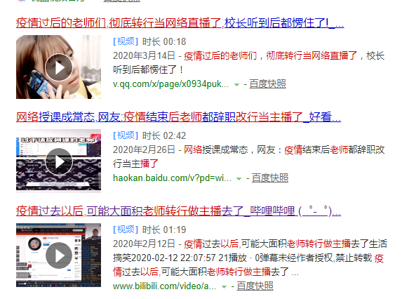 被网课逼疯的人民教师,在拿上教师资格证的那天,哪里想过自己有一天要当主播营业?在死磕直播课的日子里,每位老师都深刻领会了:有条件要上,没有条件创造条件也要上的革命精神。疫情结束后,他们从初时的紧张不安到镜头前游刃有余,谈笑风生。他们从技术小白,变身直播大咖。形势变化,助推了教育行业的进程,也开启了教师的新媒体生涯。网上有个很火的讨论:疫情过后的老师们,会不会彻底转行当网络直播了。。。